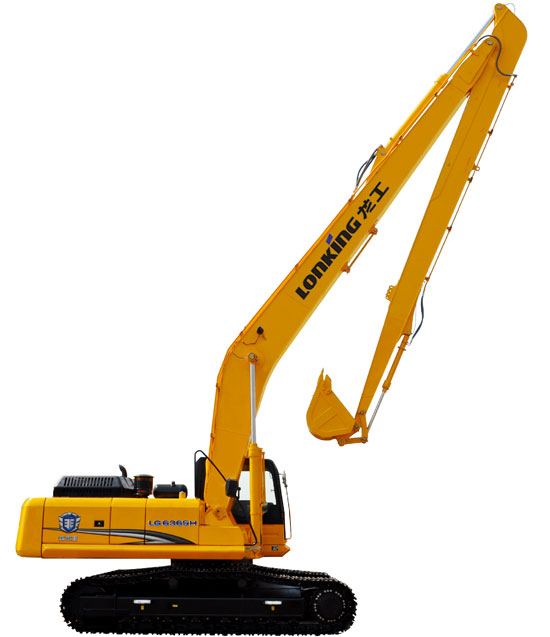 超長臂挖掘機,特點是挖掘力較小,宜配較小容量的鏟斗,優點是擴大挖掘范圍。因此超長臂挖掘機主要用于疏浚河道、清理淤泥、河沙、碎石、拆除高層建筑物等,面對各種惡劣工況均能發揮超長臂的威力。特別是因自然災害造成的泥石流滑坡引起的河流堵塞的挖掘、清理和疏浚工作以及長距離、更大深度的搬運土方、砂土、碎石等工作。