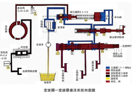 (1)系統壓力不當。調壓閥是液力傳動系統的重要部件,它控制著進入系統工作油的壓力。如果調壓閥閥芯磨損發生泄漏或者變矩器壓力閥失靈、卡滯,起不到調節作用,都會造成變矩器供油不足、壓力降低。